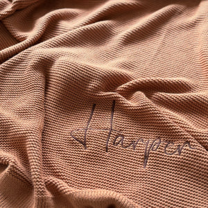 With four embroidery fonts to choose from, your blanket will be completely unique. Just follow our personalisation tool to have a play around with the font and thread colours.  Name will be displayed at the bottom right of the blanket.   Please note that the personalisation window is a guide only.  If you'd like to receive a mock-up of the text prior to embroidery, pls leave a note at checkout.